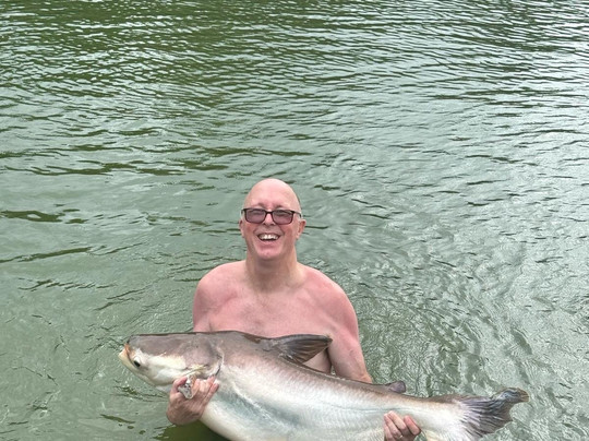 翻译:我一直想尝试钓巨型鲤鱼,所以泰国度假给了我这个机会,我很高兴我们去了Topcat。