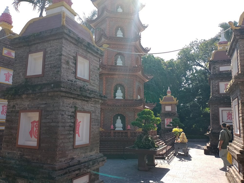 翻译:在河内旅行期间,我们和家人顺道去了镇国寺。那里的建筑真是别具一格,古老而又美丽。它坐落在西湖上一座绿意盎然的小岛上,从远处望去,仿佛置身于梦幻诗意之中。高耸的红色佛塔绝对是拍照的绝佳地点,在湖光山色的映衬下显得格外雄伟。然而,寺内游客众多,人山人海,让人有些“烦躁”。人潮拥挤,很难感受到这座神圣寺庙应有的宁静祥和。嘈杂的氛围破坏了寺庙的静谧。如果想要享受这份宁静,最好清晨早点来。尽管如此,镇国寺依然是历史和美景的必游之地,只是要做好人多拥挤的心理准备。总而言之,这里风景优美,但人太多,难以静心冥想。