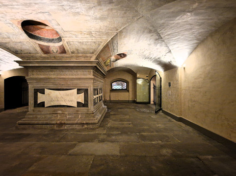 小堂由一片开阔的空间组成,地面上安放着墓碑,围绕着老科西莫的墓碑,他的石棺支撑着地下室的拱顶。从圣洛伦佐教堂一侧,也可以透过另一侧的栅栏看到这座墓碑。
