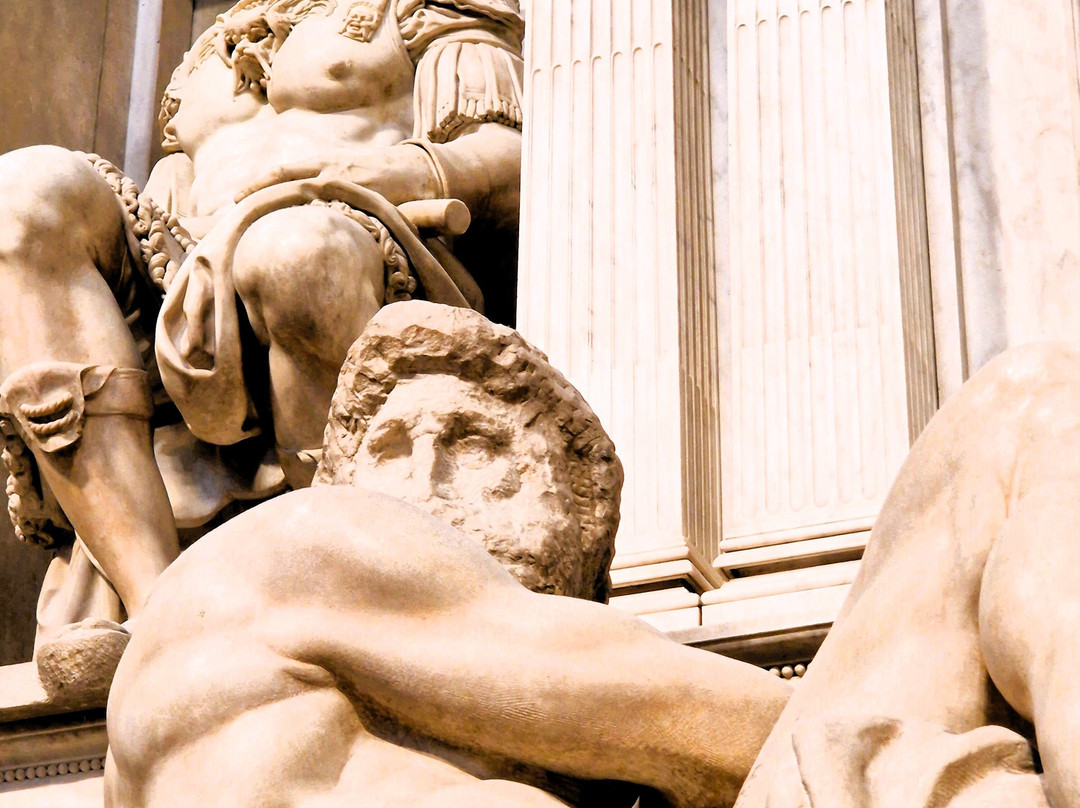 The New Sacristy - Sagrestia Nuova - contains the tombs of especially Lorenzo Magnifico, and is surrounded by statues of the times of the day - Night and Day, Dusk and Dawn. The sacristy and the tombs are designed and executed by Michelangelo and his strong masculine statues are easily recognizable from his male portraits in the Sistine Chapel frescos.