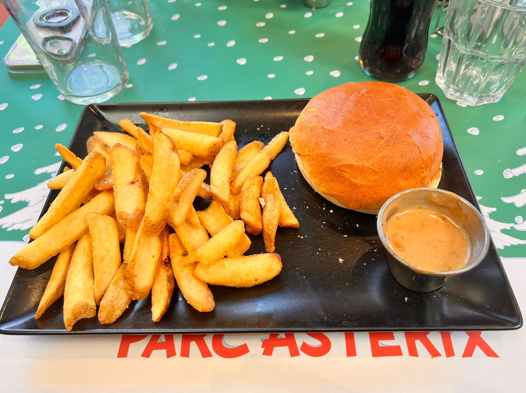 第二个问题:餐饮。公园里有很多餐饮店,包括一家自助餐厅。说到这家自助餐厅,它位于一个马戏团主题区域,看起来挺吸引人的,但真是个错误……那天暖气肯定坏了。我们被安排在一扇老旧的木门旁边,穿着外套都不敢吃饭……当时大约是下午 3 点,人不多。所以,我们首先要问的是,为什么我们会坐在门边?桌子还没准备好,服务员说会把餐具拿过来。五分钟过去了,还是什么都没来……我们问了问饮料的事,因为饮料需要提前购买(自助餐付款时就得买),服务员说必须……通常情况下,我们会坐在那里等服务员过来,但这次服务员看到我们没有餐具,就过来给我们拿了。说实话,我宁愿要勺子而不是第二把刀,不过算了,也许这是法国的传统吧……食物不够热,更糟糕的是,一个服务员过来和我们聊天,抱怨食物太冷等等,说靠近门口的位置不太好,建议我们下次要求换个位置……考虑到餐厅几乎空无一人,这再次证明了服务员的效率低下……第二天,我们选择了去湖边餐厅。稍等片刻后,服务员就把我们领到了座位上。餐厅内部装修很像学校食堂,不过也无所谓了。服务员过来点餐,我们点了两个不同的汉堡。我的同伴要求他的汉堡不要加酱。服务员很快就来了,但到了我们桌边,既没有打招呼,也没有介绍菜品,更没有问“这是谁家的辣椒酱?”。所以,他不仅态度恶劣,甚至连自己手里的菜都认不出来……至少他知道酱料是什么,这算是个优点吧……当然,故事本来可以就此结束,但很不巧的是,我们点的不加酱的汉堡最后还是加了酱……如果你想知道为什么要等这么久,那不是因为顾客在桌边磨蹭,因为上菜速度很快,而是因为服务员没有及时收拾餐桌。我觉得我们隔壁桌大概有十分钟没人看管了……真是太可惜了,这又是一个客流管理方面的问题……如果连餐厅都卷进来了,那这恐怕会成为公园里一个反复出现的问题……巴黎发展署(CDA)什么时候才能给旗下餐厅装上Filotomatix点餐系统呢?