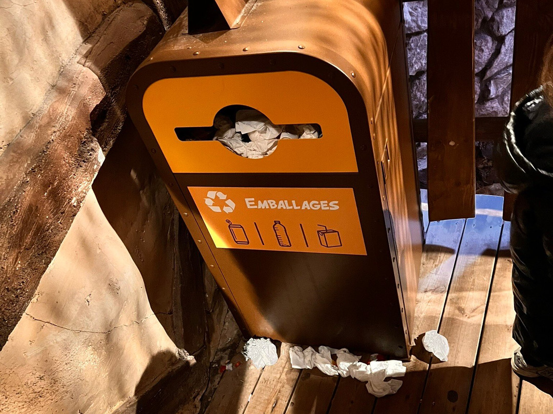 Ex : Cetautomatix en programme Hotel donc 30 minutes avant que le parc ouvre, une poubelle déborde et une fois en gare, 11 employés qui parlent ensemble, rigolent… Suffirait d’en prendre un pour passer un coup de balais ou ramasser ce qui traîne… mais votre priorité à plus l’air tournée vers la vente des filotomatix que sur la propreté de votre parc…
