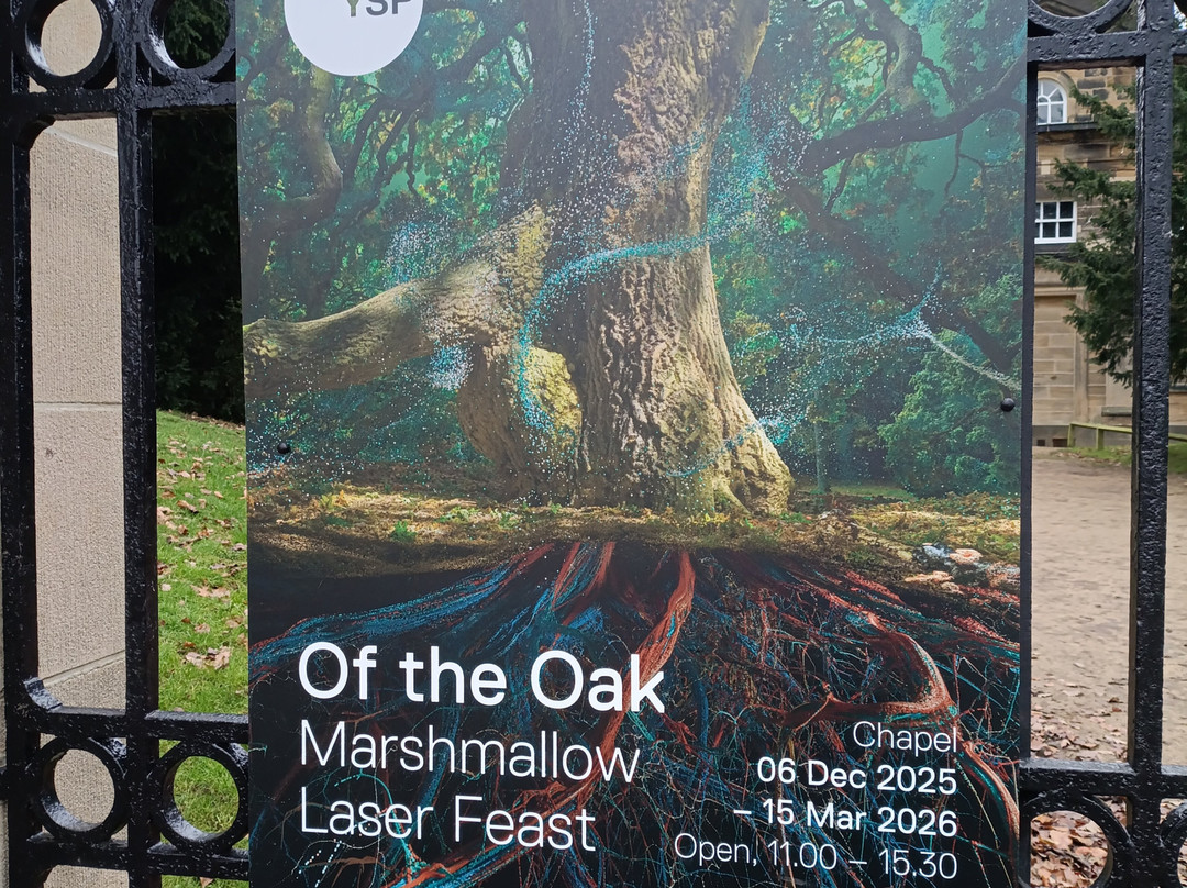 翻译:我特意去约克郡雕塑公园参观了“棉花糖激光盛宴:橡树”展览。