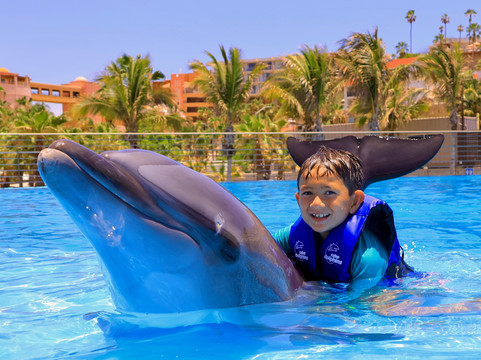 点评:We traveled to Cabo on the Carnival Panorama. Cabo Dolphins was a short walk down the pier. Unfortunately the cruise did not offer the dolphin excursion for children under 4 so I booked through Cabo Adventures. I asked for help booking online but they referred me to the cruise so I did it by myself but booked wrong. Fortunately the manager on duty was able to rebook our family (my husband, me, 2/5/7 yo kids) for a private tour for minimal extra an hour later. Our dolphin, Kobe, and trainer (her name started with an N…ugh mom brain!) were incredible. We were able to do so much with Kobe and were amazed with his intelligence! We all had a blast. Towels are provided so don’t carry those and lockers were small but we were able to store our stroller and large bag behind the booking desk. There’s a lovely indoor cafe and store with plenty of room and air conditioning so the wait was fine. I knew ahead of time thanks to Travelocity to expect to pay a lot for photos. The whole experience was one of a kind. Thank you, Cabo Dolphins!!
