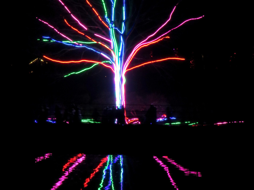 因为我们在这里过夜,所以不用担心单独预订停车位的问题,因为我们已经把车停在了城堡里。从住宿区/主城堡可以进入灯光秀的中途区域(我们仍然需要出示门票)。灯光和音乐的主题性很强,各种声音和谐交融,没有重叠或冲突,还有许多不同的特效,包括真正的火焰和喷泉表演——甚至圣诞老人还亲自在他的小屋旁与大家见面!一些区域人很多,大家都想以灯光隧道为背景拍照——谁不想呢,毕竟这是所有灯光秀活动中最受欢迎的“自拍”之一——但所有区域都不拥挤,只要有点耐心,每个人都能拍到自己想要的照片。