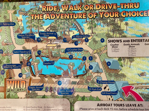 点评:Oh man book this experience! We have been in Florida for nearly two months and this visit to Wild Florida was the highlight! We chose the one hour airboat tour, which included free admission to the Gator Park, where you can feed the alligators, see many varieties of gators and saltwater crocodiles, capybara, snakes, lemur, sloths, tortoise, kangaroo, exotic birds, and more. I did not expect to see actual alligators in the wild, but our Captain (Bob) knew just where they all were, including two mamas with their many footlong babies. We saw egrets, great blue heron, many other birds, and too many alligators to count. There is a great gift shop where you can buy all things alligator (prices not bad either), snacks, and there is the Chomp House Grill if you get hungry for lunch. I cannot recommend this place highly enough. If you are lucky enough to score tickets for an airboat tour, grab em! We booked two months in advance to get ours and it was sold out.