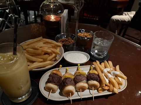 我们点了松露薯条,但我们不喜欢里面的酸奶油和蛋黄酱。松露薯条一点松露油的味道都没有,我们已经向服务员反映过,但他回复说酱汁里加了松露油,我们完全不喜欢这个味道。薯条我们直到最后都没动。