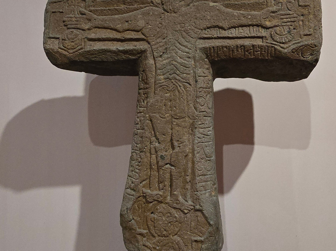 Right outside at the entrance, there is a 1993 replica of the statue of Armenian King Gagik I who ruled Armenia at the end of the tenth century, showing him standing and presenting a model of the church of St. Gregory, which he had commissioned to be built in Ani, while wearing an arab outfit and turban which reflects his ties with the abbasid rulers. Unfortunately the original statue was lost in WWI and an alleged piece of it somehow resides now in a turkish museum.