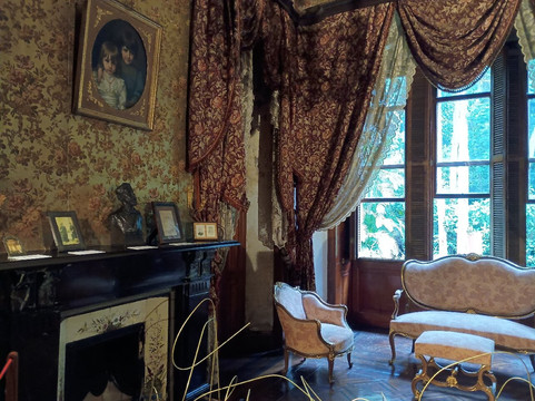 房子里的家具齐全,而且非常漂亮,包括吊灯、窗帘、水晶镜等等,至今都保存完好。墙纸上还贴着金粉,天花板上绘有壁画,在当时看来都非常奢华。