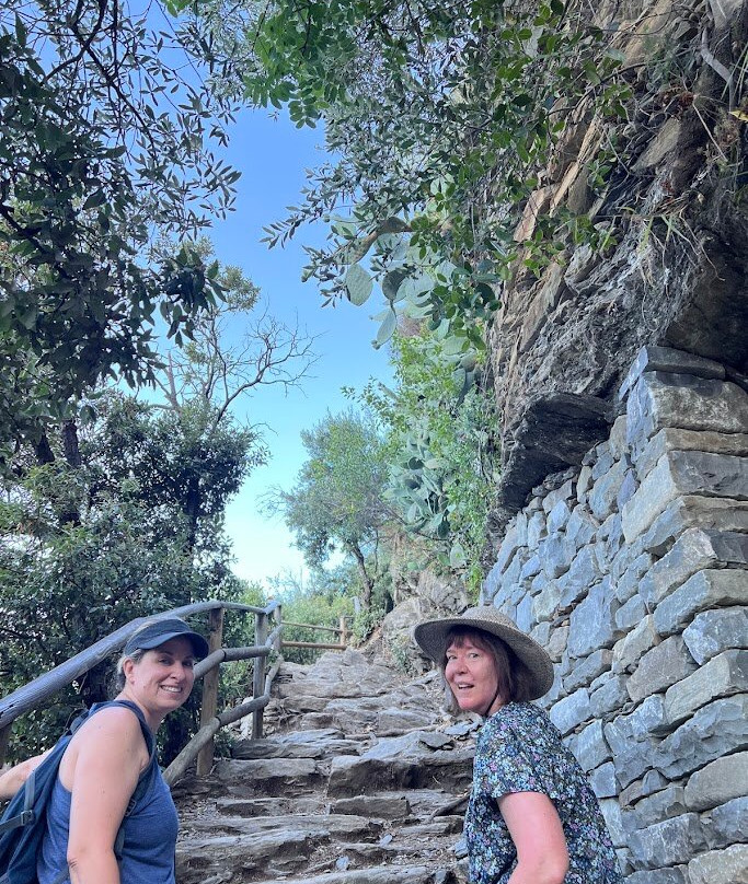 点评:On July 29, 2025, we left our hotel in Levanto at 6 a.m. and took the train to Vernazza. Seeing the village with absolutely no one in it was a bonus. But we probably walked past the starting point for the hike several times--it is posted on the wall between two buildings in town. As it wasn't peak season, we hiked from Vernazza to Monterroso. The hike is slightly easier in that direction--shorter flights of steps. We did make sure to stop and take a pic of Vernazza on our way out. Going up from Vernazza the "stairs" are just uneven blocks of stone. Once you start down into Monterosso, the stairs are concrete, and there are lots of them. Very few landings or resting points. That early in the morning we saw very few people, and most of the trail was still in the shade. We had a great time, even if we had to stop frequently to rest. It took us about 2.5 hours to complete the hike.