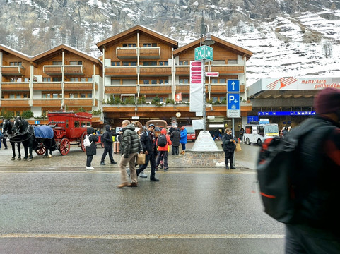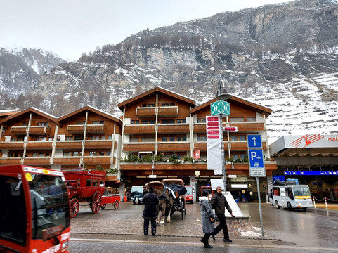 Outside of the Chalet a few metres walk was surrounded by souvenirs Shops selling beautiful gift items of Switzerland, pubs bars restaurants, pizza parlors. There was a square nearby the Railway station where you could rent horse carriage to go around Zermatt on a sight see.