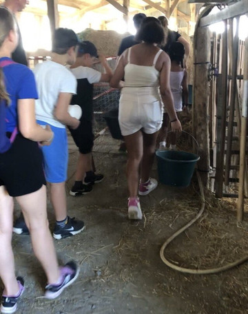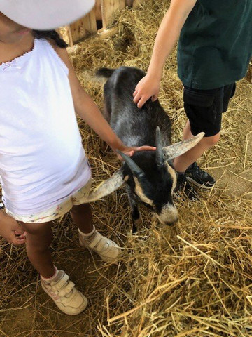 Malgré la très forte chaleur (mettons-nous aussi à la place des chèvres, qui n'étaient pas dehors, en plein soleil), tout le monde a été attentif, discipliné et les enfants ont pu préparer le "gâteau" des chèvres avant de leur donner un peu plus tard avant la fin de cette merveilleuse animation.