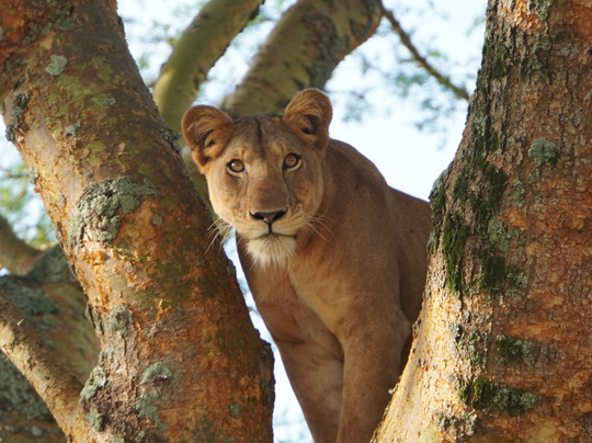 有一次,他甚至拿出了专业相机,结果发现他是一位非常棒的野生动物摄影师。多亏了他,我们在最后一刻终于看到了我们梦寐以求的景象:一对狮子站在树上!
