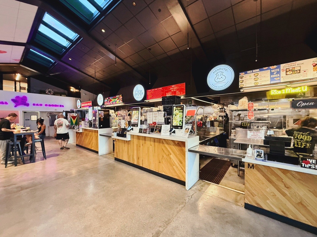 Almuchow的春卷也很不错。Lotus & Bean的拿铁很好喝,而且还有有趣的季节性饮品单。这里还有墨西哥菜、地中海菜、酒吧以及其他各种类型的美食。甜点方面,你可以找到冰淇淋、刨冰、烘焙食品和珍珠奶茶——考虑到美食广场的规模,种类之多着实令人惊喜。