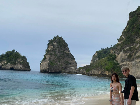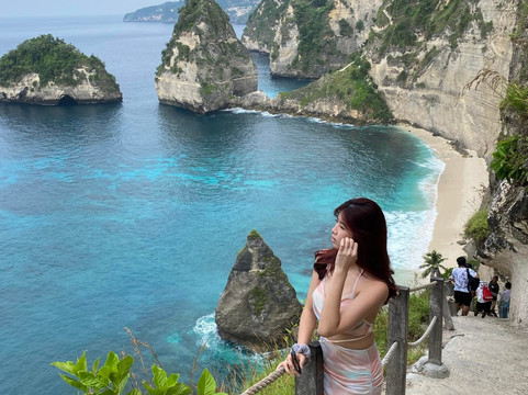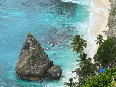 点评:Diamond Beach on Penida Island, Bali, is a stunning, untouched white-sand beach with silky blue waters, surrounded by limestone cliffs and palm trees. It's located on the eastern tip of Nusa Penida and has become a popular destination due to its breathtaking views and unique landscape ¹.