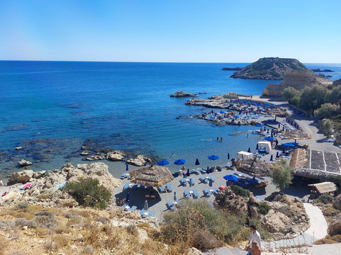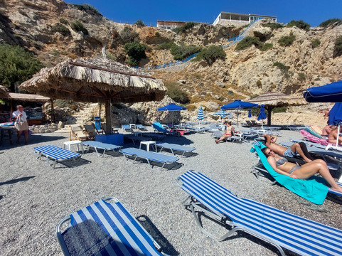 您可以通过楼梯到达海滩,这对于大多数人来说并不太具有挑战性(100 级台阶)。台阶顶部有一个小型免费停车场和一家希腊餐厅。