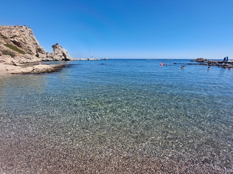 海滩很小,位于一个避风的海湾。海滩并不完全是天然的,因为是用鹅卵石作为基础的,但它仍然给人留下了很好的印象。 我推荐摇滚鞋或凉鞋。 我建议一大早去,下午 4 点至 5 点离开,因为那时海滩的大部分地方都会有阴凉的地方。