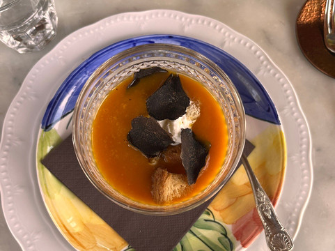 翻译:这次经历让我们感受到了松露的绝妙风味,并留下了周围树林中宁静绿洲的记忆。女主人英加和那些非常善良、总是面带微笑的女孩在整个午餐期间都热情地欢迎和宠爱我们,还告诉我们这个出色的项目是如何诞生的,如今它已成为一颗真正的珍宝。这家餐厅最初只是一棵百年老橡树下的一张桌子,如今已装饰高雅,一尘不染,周围环绕着美丽的大自然。继续看菜单,您可以点菜,也可以选择 60 欧元的品尝菜单,其中包括三道开胃菜(scrippelle 比其他一切都好)、第一道菜、第二道菜和甜点(“sontuosa” 是味道和清淡的爆炸式增长)。尽管现在还不是葡萄酒的季节,我们仍然很欣赏通过正确的搭配来提升优质黑葡萄酒的口感。离开之前,我们从食品储藏室买了一些产品,以便在白松露季节回来之前再次尝试松露的味道。我们原本打算只是来这里度个周末,但现在我们却在想什么时候可以再回去。大家做得好