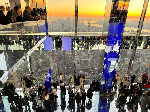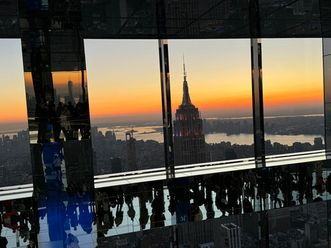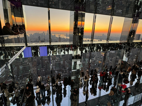 翻译:我们在纽约逗留期间,特地来参观SUMMIT。我们提前预订了门票,并选择了日落时分。我们并没有失望,这真是一次不可思议的经历,我们感到非常惊讶!太阳已经出来了,所以日落景色真是完美。然后,不同的房间给我们一种风景完全变化的感觉,我们感觉自己好像在飞翔,特别是在第一个房间,那个有镜子的房间,当我们在玻璃平台上拍照时,我们会发现自己的脚处于虚空中。纽约的景色多么美丽啊!参观结束时的鸡尾酒也很不错,为这次非常成功的参观画上了圆满的句号。简而言之,我强烈推荐这种体验,它比峭石之巅或帝国大厦更加现代、更加震撼。