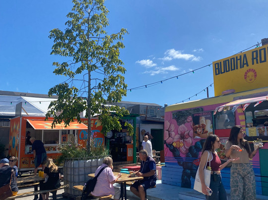 用旧集装箱搭建的小吃摊、酒吧以及整体设计,赋予了这里独特而温馨的氛围。然而,种类繁多的食物也让人有点不知所措,因为每样东西闻起来和看起来都那么诱人。种类繁多的菜品不仅有欧洲菜,还有亚洲和非洲菜的摊位。