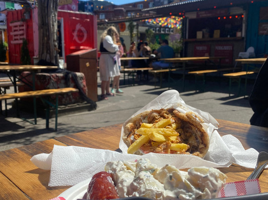 The use of old shipping containers for food stalls, bars and just for general design gave the area a very unique and welcoming atmosphere. The sheer variety of food did cause a dilemma, however, as everything smelled and looked so nice. The variety wasn't just subject to European food, as there were stalls with Asian and African cuisine as well.