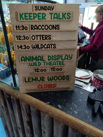点评:My husband and I were staying locally and had passed the zoo on the way to our accommodation. We decided to visit on one of our days we had free. We are used to the likes of Chester and Blackpool zoo so this one is quite small in comparison but non the less there was a good selection of animals to see and we spend 3/4 hours here. We went to the racoon, owl and otter talks which were all very informative. Alot of the animals here we hadn't seen before. The otters at Blackpool zoo you generally don't see but the 3 here are very cute and sociable we spend ages just watching them playing and eating it was lovely. We had lunch in the cafe and the food was good. I had pasta king which I hadn't seen or had since I was in college 17 years ago which was a blast from the past and took me right back! My husband had the sausage and chips which was a good portion too. lots of desserts to choose from too I had to have the churros and my husband had a donut. The churros were really nice only id of preferred a pot of Nutella to dip them in as opposed to the chocolate syrup it came with. We had a look around the shop before we left but it was mainly teddies so we didn't buy anything.