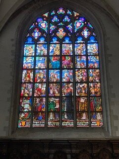翻译:大教堂广场周围遍布各式各样的餐厅和咖啡馆,还有两座引人注目的雕塑:广场中央一座由内洛和帕特拉什创作的石雕,描绘了一个孩子和小狗的寓言故事;以及大教堂建造者纪念碑。千万不要错过它们。教堂外部装饰精美,入口处有一个壮丽的大门(描绘了最后的审判)。建筑风格,尤其是尖顶,气势恢宏。教堂内部艺术品琳琅满目,其中最引人注目的是鲁本斯的两幅精美三联画,它们是世界上仅存的两幅仍保留在原位的鲁本斯作品,分别位于主祭坛两侧,位置与他最初的设想完全一致。此外,教堂内还收藏了鲁本斯、德·沃斯、弗兰肯等人的其他作品,以及一系列位于小教堂内的多联祭坛画。彩色玻璃窗令人叹为观止,木雕作品也同样精美绝伦,尤其是唱诗班席位和讲坛。这是一座世界级的教堂,绝对不容错过。