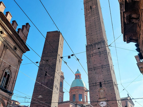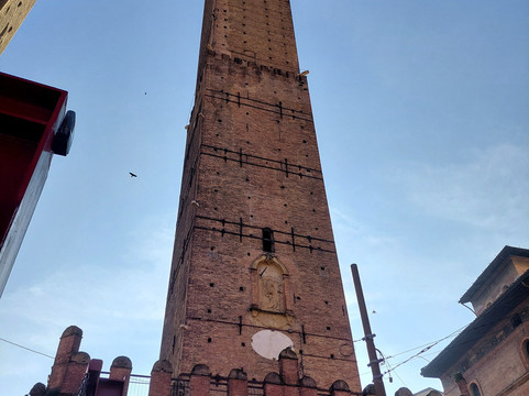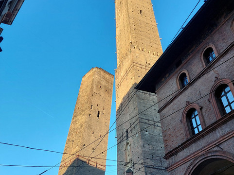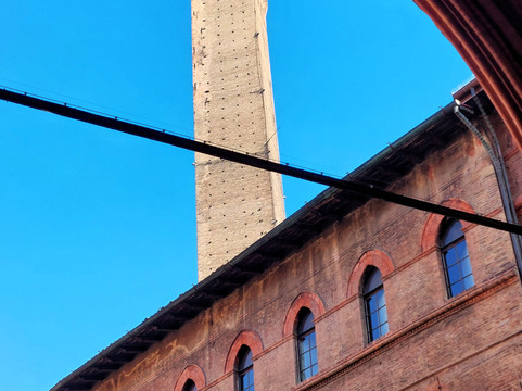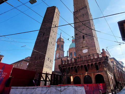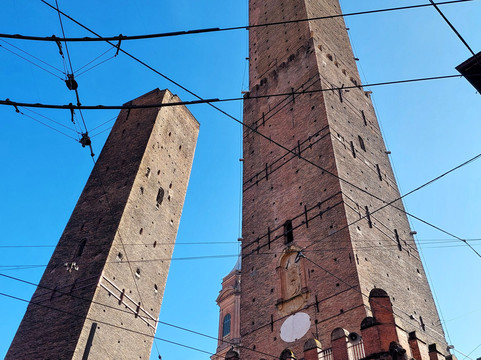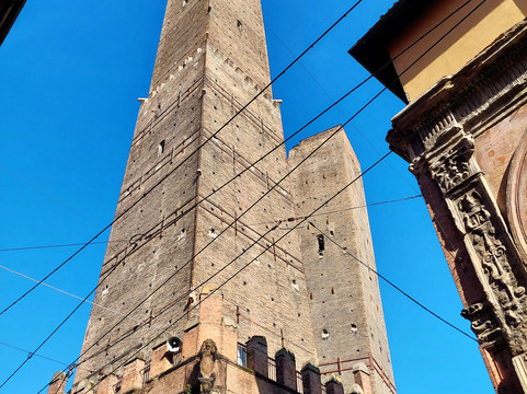 翻译:它们可能是博洛尼亚的主要标志:两座 12 世纪的中世纪塔楼,彼此相邻。阿西内利塔又细又高(97 米),城里没有任何其他塔能与之媲美,而加里森达塔高达 47 米,虽然高度不小,但与阿西内利塔相比,它就显得矮小了。可以肯定的是,在 14 世纪中叶,加里森达塔因稳定性问题而被缩短(最初高 60 米),但不确定阿西内利塔是否也被缩短。两座塔均倾斜,但阿西内利塔向西倾斜 1.8°,从下方无法立即察觉,而加里森达塔的倾斜度(倾斜 4°)非常明显。后者具有古典结构,没有特别的装饰,而在阿西内利塔的底部有一个美丽的城垛门廊;此外,在后者,您可以爬上 498 级台阶到达顶部,从近 100 米的高度欣赏这座城市。不幸的是,自 2023 年 10 月起,该地区因加里森达的巩固工程而被封锁(我估计这将持续相当长一段时间),同时阿西内利塔也已对公众关闭。