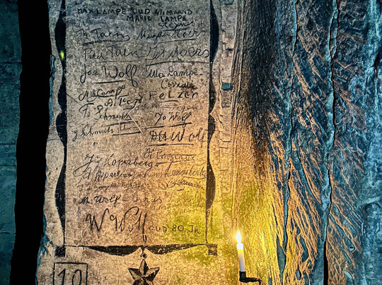 参观完城堡后,我们费了好大劲才找到要参观的洞穴,但最终还是找到了一个路标,沿着路线走了一段,离开了镇中心。我们错过了参观时间(又是我的错!),好在幸运地安排了荷兰语导览。这些洞穴是从哪里挖出来的?在法国大革命期间,法兰西共和国试图削弱天主教的影响,这些洞穴除了曾经是采石场外,还被用作教堂。