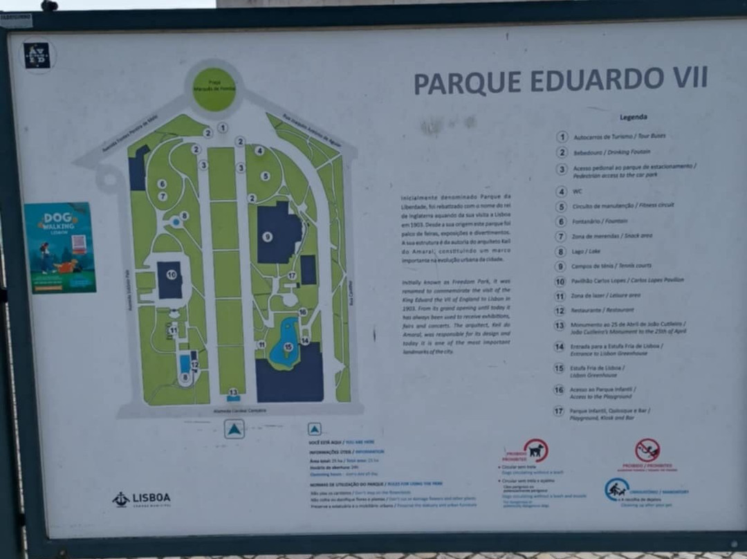 点评:…in occasione del mio tour in Portogallo!!…quindi partita da Lisbona!!…il primo giorno!!…ho visitato appunto questa città!!…e non potevo mancare di vedere uno dei punti di riferimento di Lisbona!!…il grande Parco Edoardo VII!!…che si trova proprio nel cuore della città!!…tanto verde!!…e è tutto curato alla perfezione!!…sono incluse anche due serre!!…e un edificio che viene adibito a mostre e eventi!!…inoltre!!…una bella e scenografica fontana!!…da qui si gode di una vista panoramica sulla città che si estende fino al fiume Tago!!…si dice che in origine il parco aveva un altro nome!!…era chiamato Parco della Libertà!!…ma poi dopo la visita del re Edoardo VII prese il suo nome!!…si dice anche per consolidare i due stati!!…che dire!!…assolutamente da non perdere il Parco Edoardo VII!!…se si arriva a Lisbona!!…e se si vuole ammirare uno dei panorami più belli della città!!…Lisbona da vivere!!…🇵🇹🎉🍃🌲👍🎉⬆️🔝🎉‼️