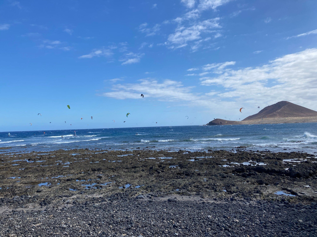 点评:El Médano ha un’energia tutta sua. Questa piccola località costiera, sospesa tra l’oceano e il vento, è il regno incontrastato del kitesurf: centinaia di vele colorate danzano nel cielo come aquiloni impazziti, dando vita a uno spettacolo che ipnotizza chiunque passi di lì.