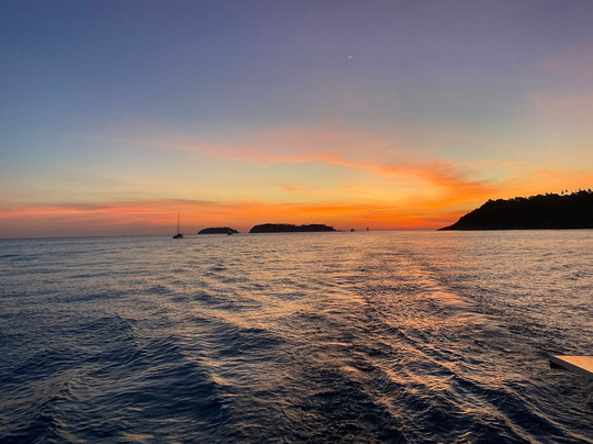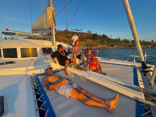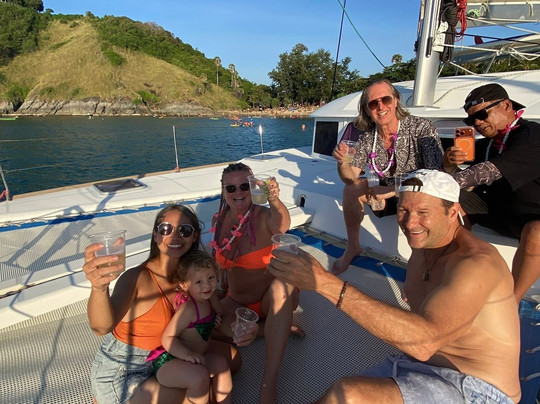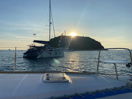 点评:I highly recommend this tour company who welcomes you like family from the time that you arrive. They have three catamarans to choose from with a dedicated, friendly and helpful staff. We were on their 38’ boat. We cruised by Cape Promthep and Yu-Nai beach with absolutely gorgeous weather. The snacks and food were excellent. They grilled steak, vegetables and pineapple along with vegetable summer rolls. The Korean grapes were the largest that I have ever seen. Jhenna and almost two years old Kylie kept everyone entertained. Kylie is adorable and loves to play and sing on the yacht. We had an amazing absolutely perfect day with a gorgeous sunset on the water. The moon was smiling at us after the sunset. We could not have had a better time. I will definitely go out with them again when I visit Phuket. You won’t be disappointed. Their larger yachts have bedrooms for overnight stays and longer trips.