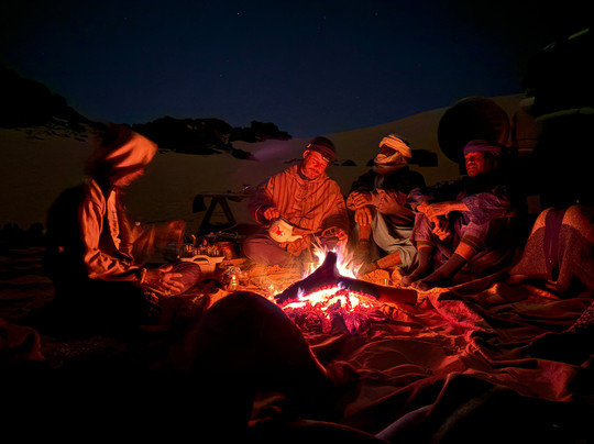 沙漠的静谧、令人叹为观止的景色、舞动的火焰、头顶无尽的星空、歌声、音乐、笑容、共享的茶水……这些简单却又震撼人心的瞬间深深地触动了我们。面对如此浩瀚的自然,我们感到自身的渺小,却又无比鲜活。