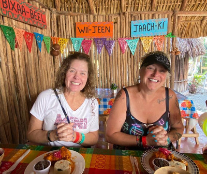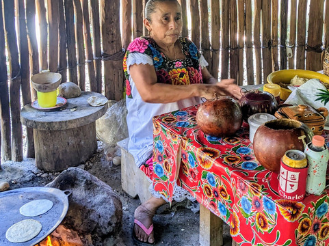 参观玛雅小村庄太棒了!这是一天中的亮点!!!我们看着奶奶亲手制作玉米饼。吃了 Pedro 和他的妻子 Lara 准备的美味午餐。不要错过芙蓉汁和手工巧克力!!