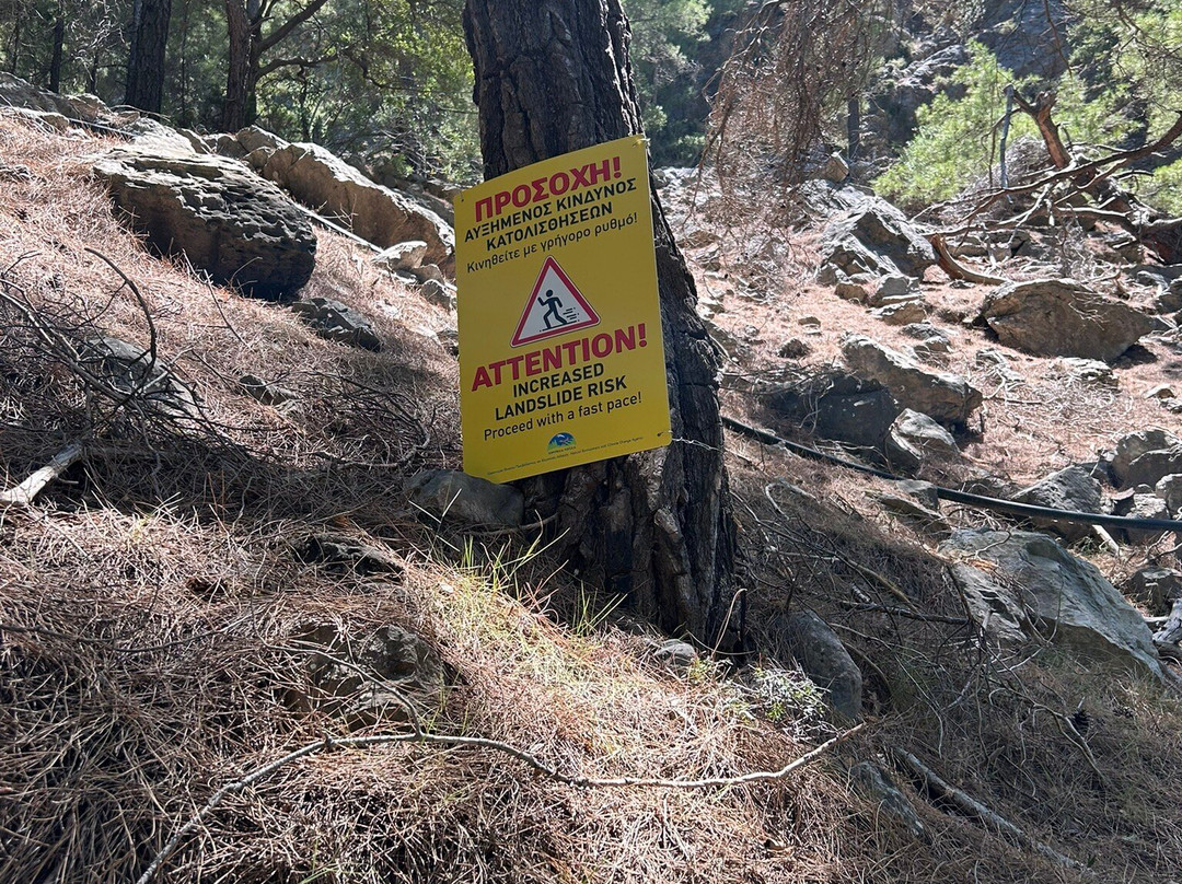 翻译:这条峡谷步道长13公里,大部分是下坡。我们开车过去。记得把卫星导航调到“萨马利亚峡谷咖啡馆”。我们一开始调到萨马利亚峡谷,结果导航把我们带错了地方。停车场现金5欧元,有自动取款机。