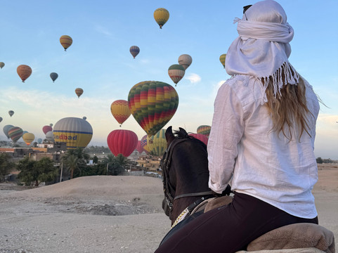 翻译:我参加了开罗-卢克索-赫尔格达的骑马假期,它真的让我的一些梦想成真了:在沙漠中骑马,在海里和马一起游泳,观赏金字塔,体验埃及风情。