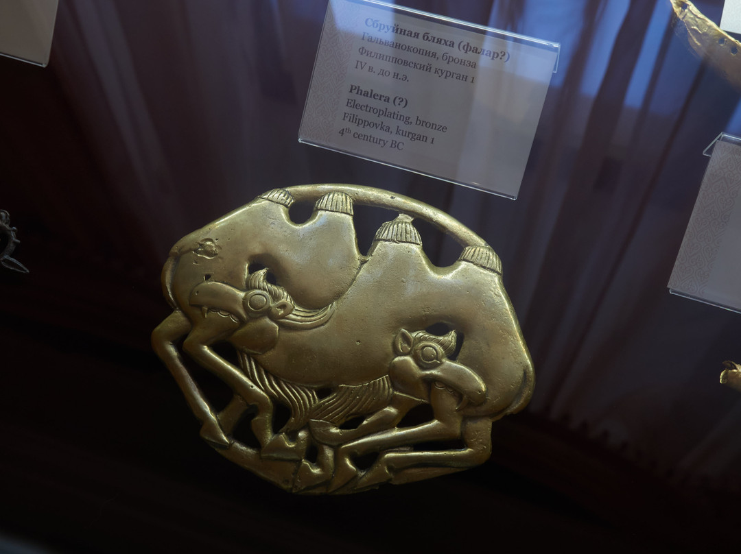 点评:Музей археологии и этнографии – один из интереснейших музеев города. Он довольно камерный, можно выделить три основных экспозиции: зал археологии, этнографическую экспозицию и коллекцию сарматского золота. Зал этнографии в идеале лучше посетить с экскурсией, так выставка лучше раскрывается. Зал археологии оказался неожиданно интересным и понятным даже без дополнительных пояснений экскурсовода: много информации на стендах, в том числе отображены наиболее примечательные предметы коллекции: стеклянная бусина в виде человеческой головы, бронзовый колокольчик с навершием в виде человечка, etc. Лично мне ещё запомнился амулет в виде утиной лапки. Но главная жемчужина всей коллекции музея – находки с раскопок Филипповских курганов, золото сарматов. Причудливые деревянные олени, обитые листами золота и серебра, накладки в виде различных животных однозначно великолепны. А ещё здесь есть свой собственный метеорит, который даже можно потрогать.