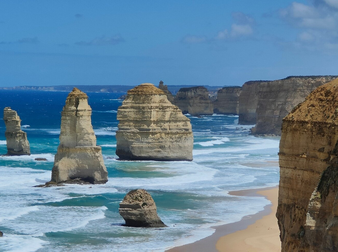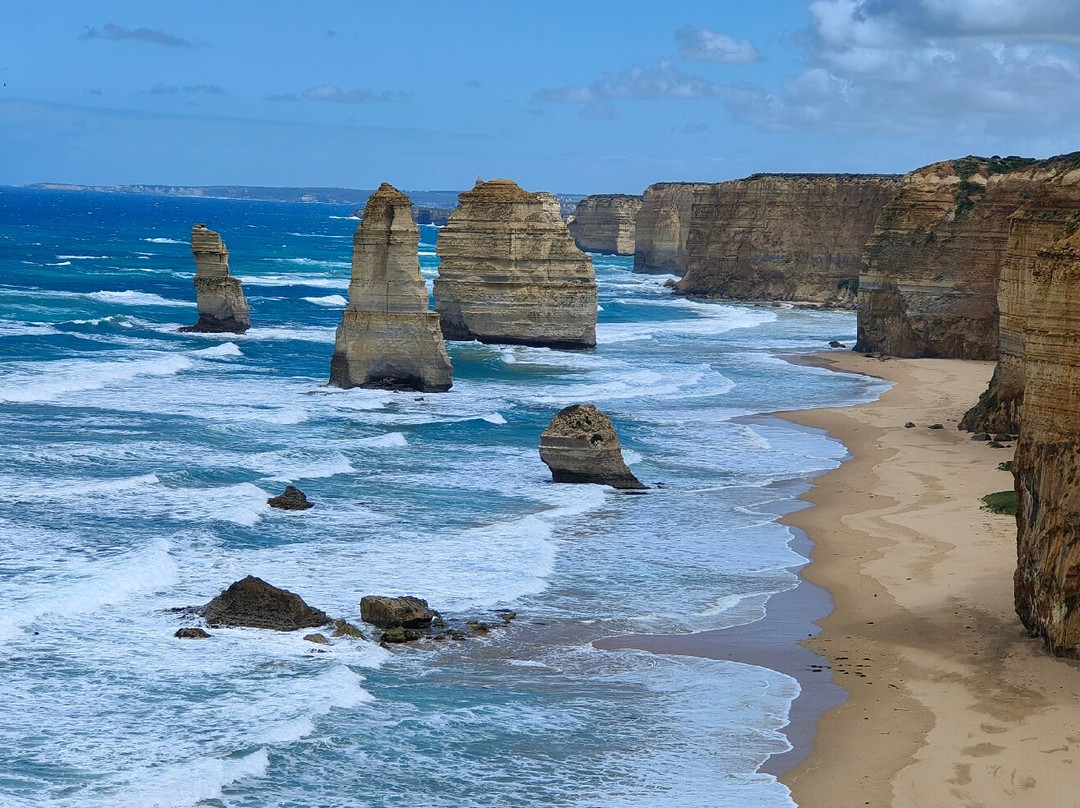 但是,我们此行的目的却令人叹为观止。正午时分,阳光洒在岩石上,更衬托出它们的壮丽。天气阴晴不定,风也很大,游客们纷纷拍摄海岸线和矗立在海中的岩石,拍下了令人惊艳的照片。这里并不像一些热门景点那样拥挤,不会出现有人挡住视线、破坏美景的情况。