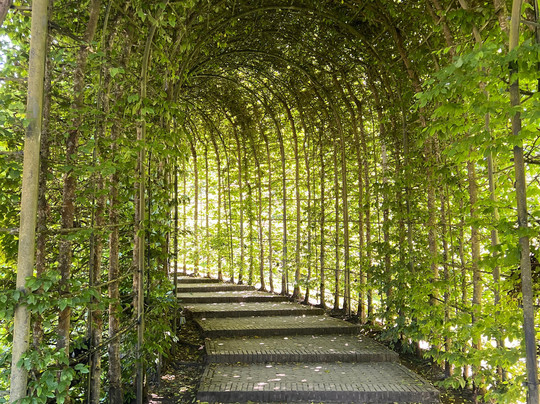 We sat with coffee watching the fountain and admiring the giant hedge on either side, which on closer inspection is a giant curving passageway of green!