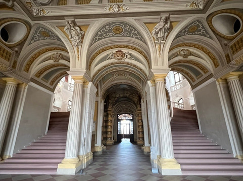 这里有三间,也许四间房间在二战轰炸后完全重建。重建的房间非常华丽。不幸的是,其余的房间相当朴素。不过,里面有一些漂亮的家具。在一些房间里,战后没有重新做石膏线条,而是只刷了漆。这对我来说确实看起来有点奇怪。但我相信这样做更便宜、更简单。