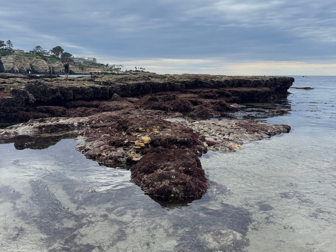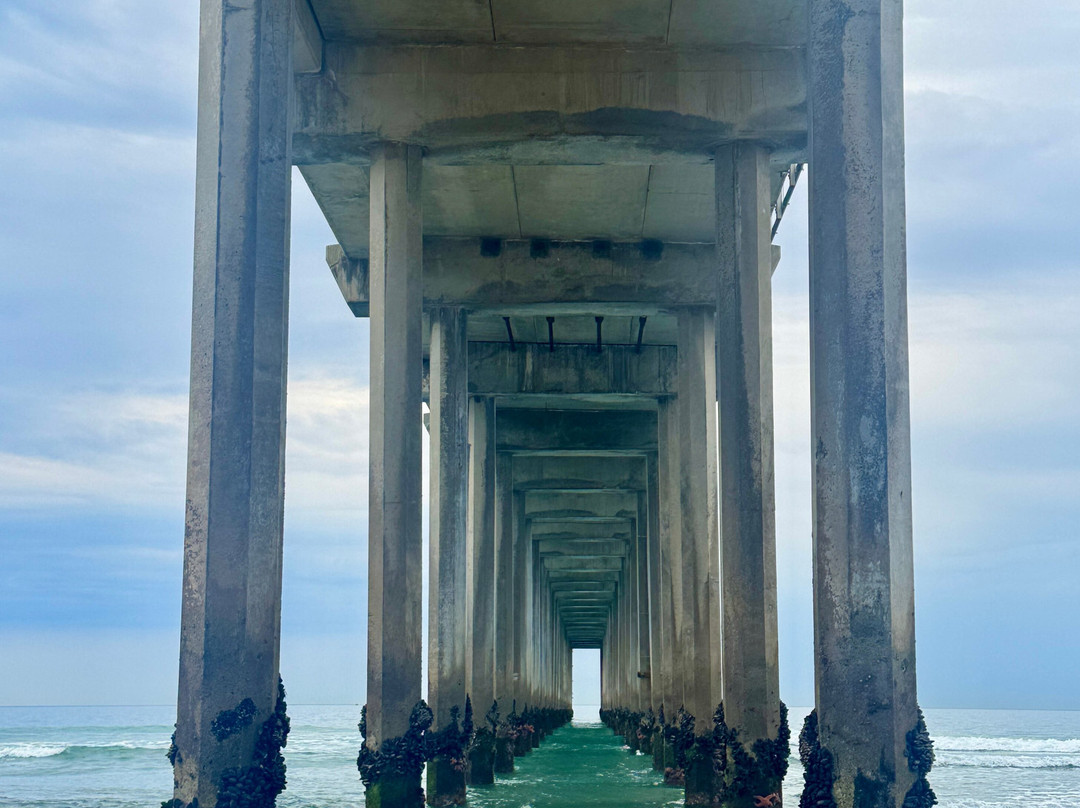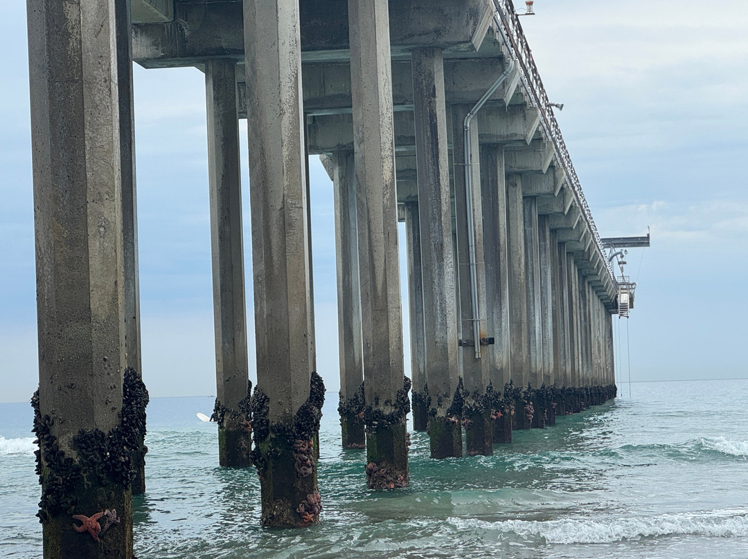 海滩的另一端是斯克里普斯码头(Scripps Pier)、斯克里普斯海洋研究所(Scripps Institute of Oceanography)。如果你去的时间合适,还能看到许多潮汐池,里面有鲜艳的橙色海星和海葵。