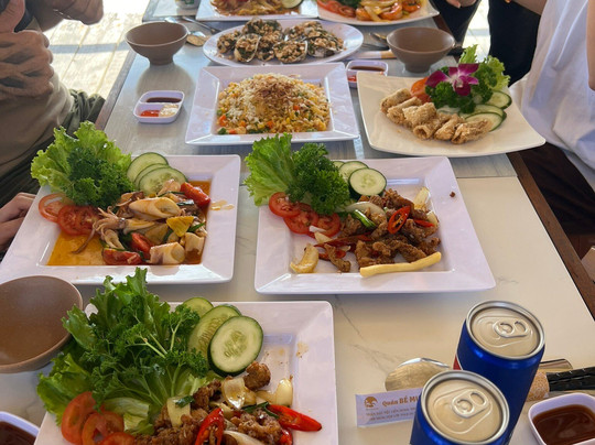 之后,我们去海边吃午饭。那是一家餐厅,菜肴会送到桌上。我觉得如果每个人都能有自己的盘子就更好了。这样可以确保每个人都能吃到同样多的饭菜,而且最重要的是,都能吃到自己喜欢的口味。