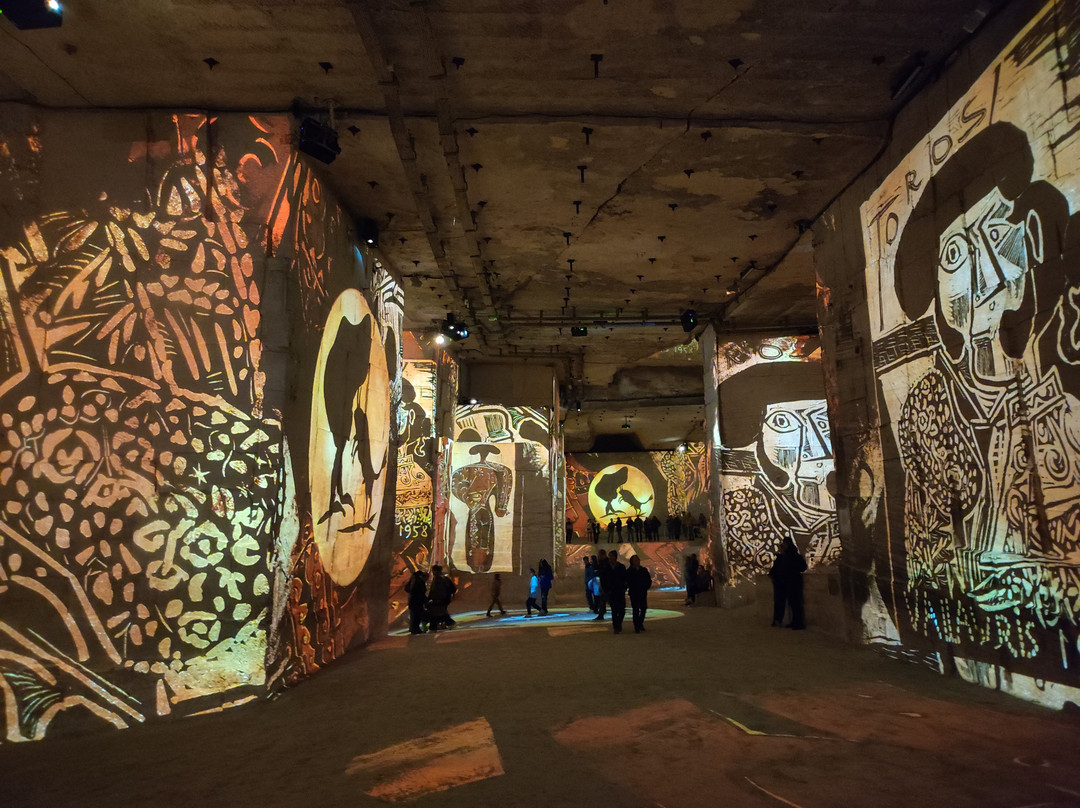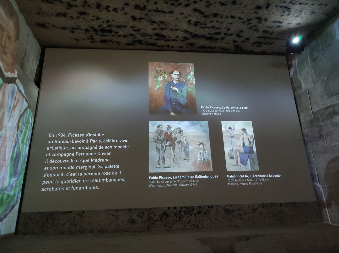 Quand aux carrières, le point noir est que l'on ne peut pas s'asseoir (sauf sur quelques bancs de pierre mais alors prévoir une serviette pour ne pas ressortir tout blanc), au bout d'un moment j'avais très mal au dos (station debout pénible). A deux endroits, tableaux fixes qui racontent la vie et l'œuvre de Picasso, très intéressant mais impossible de s'asseoir, et ça dure longtemps (au passage, on ne sait pas combien ça dure).