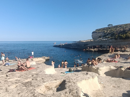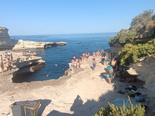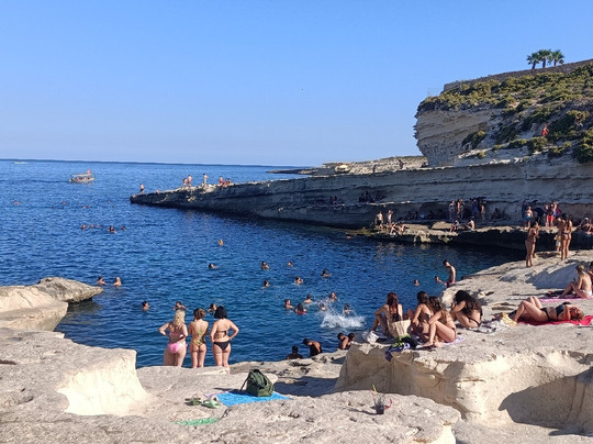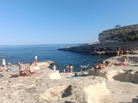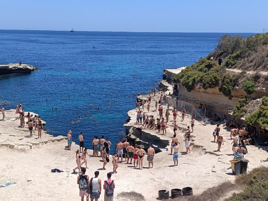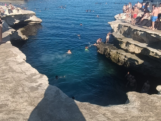 翻译:如果您访问马耳他,绝对必须尝试一次体验,我 12 年前去过那里,但天气很冷,所以我不会游泳,而且道路不同,我们几乎没有走什么路就到达了目的地。目前的经验:如果您患有心脏病或肌肉疼痛,请注意,您必须在烈日下步行 4 分钟才能到达该地方,也有地方提供付费出租车服务,但一旦您到达那里,经过轮子上的酒吧,就会有一段不错的下坡路,道路之间有突出的石头,然后是台阶,所以舒适的鞋子会更好,即使我是用 flik flok 做的,当您到达水边时,海床立即变高,蓝色的海水,太棒了,到处都是鱼!所有的努力都是有回报的,这里有很多跳跃点可以潜水并享受很多乐趣,但即使您只是想去游泳,这也是一个真正独特而壮丽的地方。去做。有人批评这里的污垢(这是事实,因为即使现在也有垃圾箱,但无知是没有止境的)和尿味(这也是事实,但我认为这是由各种天然“水池”中的死水引起的,与人们目睹的景象相比,这并没有什么令人震惊的。