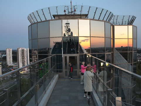 就在建筑物顶部的观景台。从图书馆的高处,可以清楚地看到明斯克用足够的想象力建造的住宅区,以及爱国口号“克维特尼,
