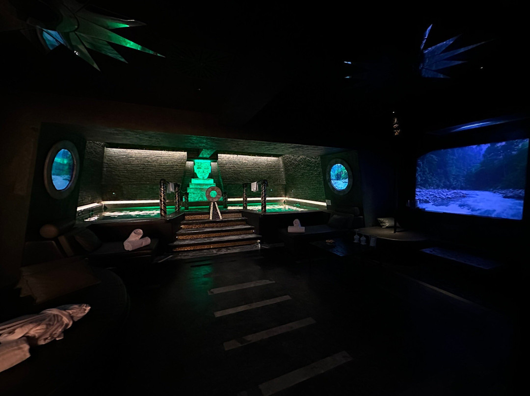 Ogni dettaglio è curato con estrema attenzione: dalle aree relax confortevoli, perfette per distendersi e rigenerarsi, alle scenografie luminose che trasformano l’esperienza in qualcosa di quasi sensoriale. La presenza di elementi d’acqua, unita alle proiezioni immersive, regala una sensazione di totale armonia e profondo relax, ideale sia per una pausa romantica che per un momento di puro benessere personale.