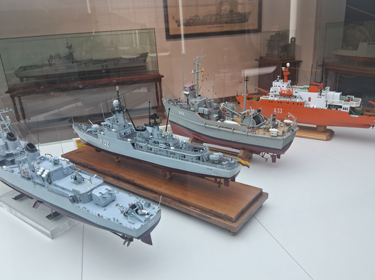 尤其值得一看的是专门介绍伊萨克·佩拉尔潜艇的展区——这艘潜艇在当时堪称超前之作(一艘电力推进潜艇)——以及潜艇战的整个发展历程(“灰狼”潜艇),其中包括二战时期德国U型潜艇G7的独特故事。G7是该型潜艇中最后一艘服役至20世纪70年代的型号。馆藏的海军模型更是令人印象深刻,叹为观止。