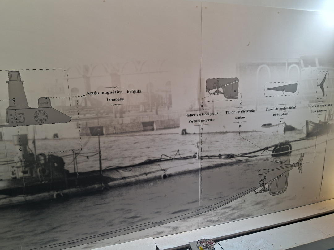 En particular vale la pena visitar la sección dedicada al submarino de Isacc Peral, un artilugio adelantado para su epoca ( un submarino de propulsión electrica) y a toda la evolución del arma submarina (los lobos grises) que incluye la singular historia del G7, un verdadero Uboat aleman de la Segunda Guerra mundial y que el ulltimo en servicio de su tipo hasta los años 70.