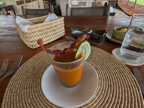 I enjoyed a sundowner, coffee break and a spectacular bush breakfast while out on our game drives. My guide, TJ was very knowledgeable and I really appreciated all of his information. We were incredibly lucky to see 4 lions have a standoff with giant forest hogs. It was a National Geographic experience right in front of our eyes!!