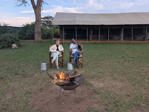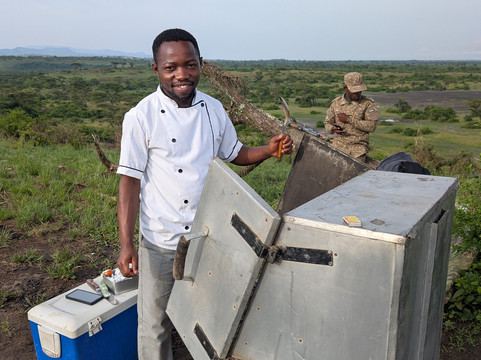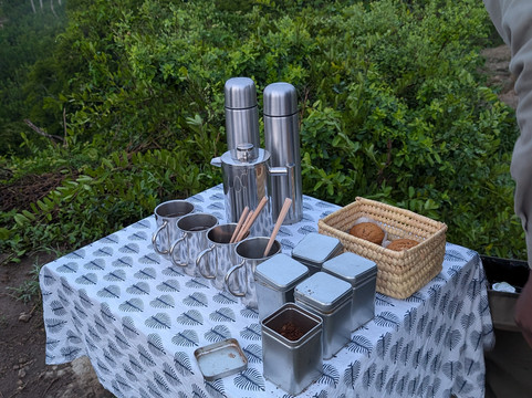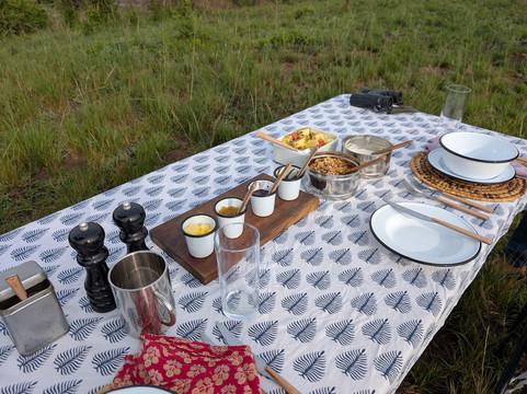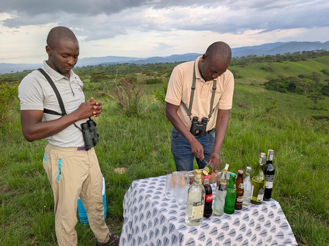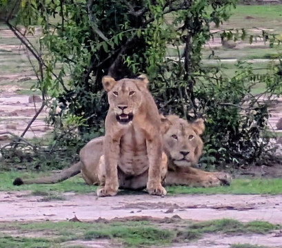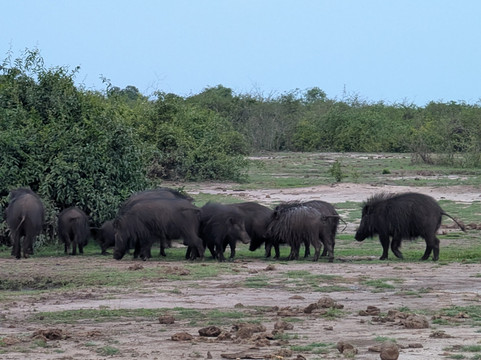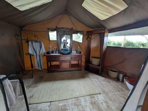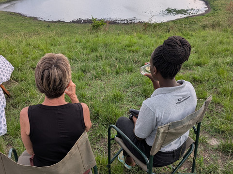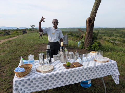 在游猎途中,我享受了日落鸡尾酒、咖啡小憩和丰盛的丛林早餐。我的向导TJ知识渊博,我非常感谢他提供的所有信息。我们非常幸运地目睹了四头狮子与巨型森林野猪对峙的场景。这简直就像国家地理频道的节目一样,就在我们眼前上演!